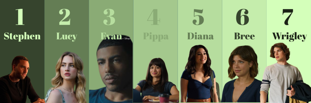 I hate characters 2–6 for not calling Stephen out on his bullshit. They see that he’s a sociopath and do nothing. Instead, they shrug and say, “Oh, that’s just Stephen being Stephen.” They know what’s happening, and everyone just lets it slide. Wrigley, on the other hand, never misses a chance to call Stephen out. When Wrigley finally reaches his limit, he stops Stephen from going to Harvard, his dream school, after what he does to Diana. Unlike the others, Wrigley doesn’t let Stephen off the hook; he makes it clear exactly what he thinks of him and enforces the consequences.
